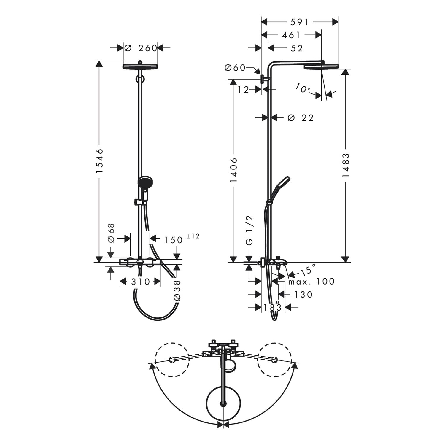 - Lieferumfang: Showerpipe mit Wannenthermostat, S-Anschlüsse, Befestigungsmaterial, Montageanleitung