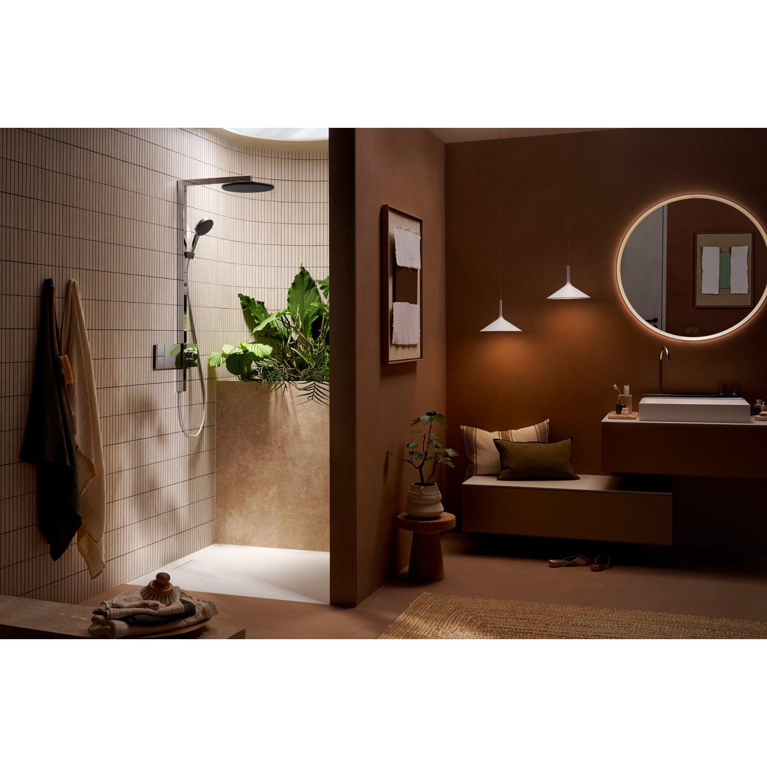 - Skulpturales Design – einfach eingebaut: Ihr hansgrohe Duschsystem wird von außen montiert (Aufputz). Die Wand bleibt unversehrt