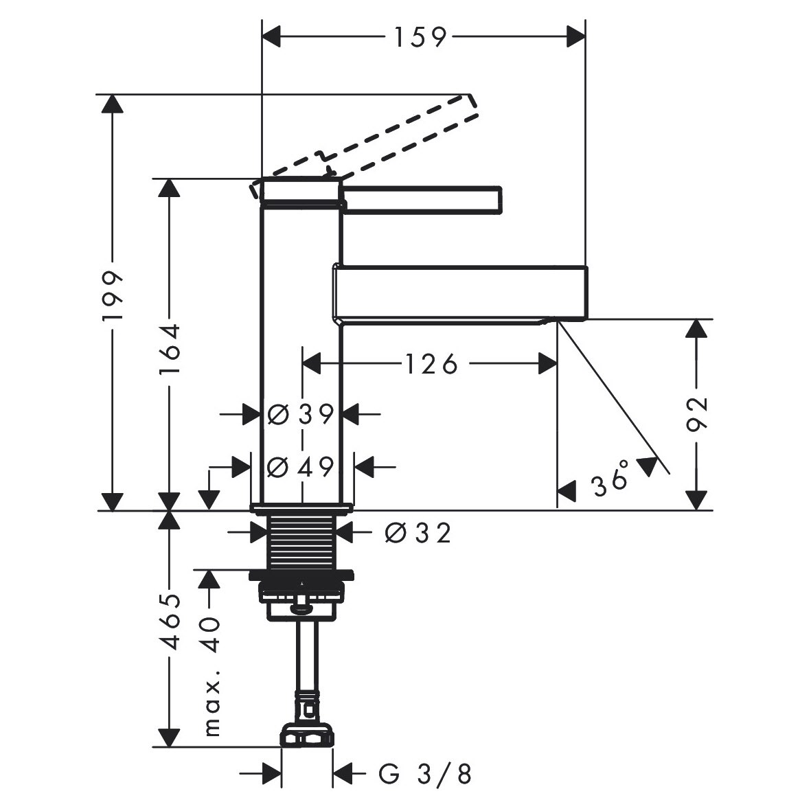 - Einhebel-Standventil, nur für Kaltwasseranschluss