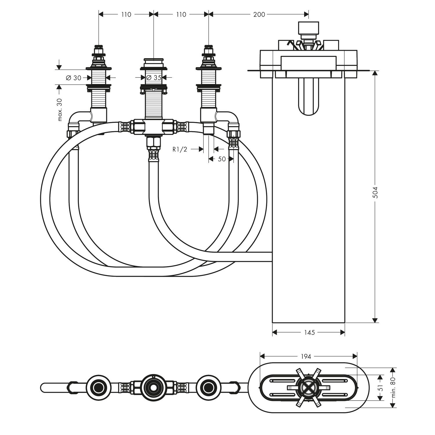 hansgrohe Grundkörper für 4-Loch Wannenrandarmatur