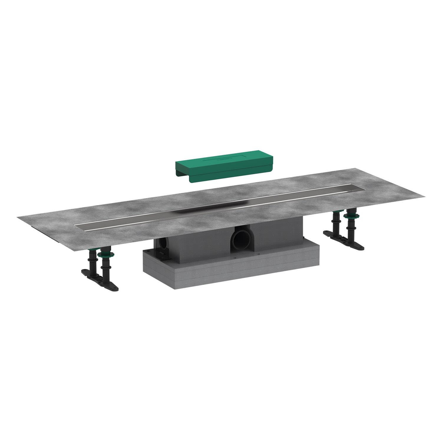 - besteht aus: Installationsset 80 cm, Grundkörper, werkseitig vormontiertem Dichtvlies, Siphon und Höhenverstellplatten