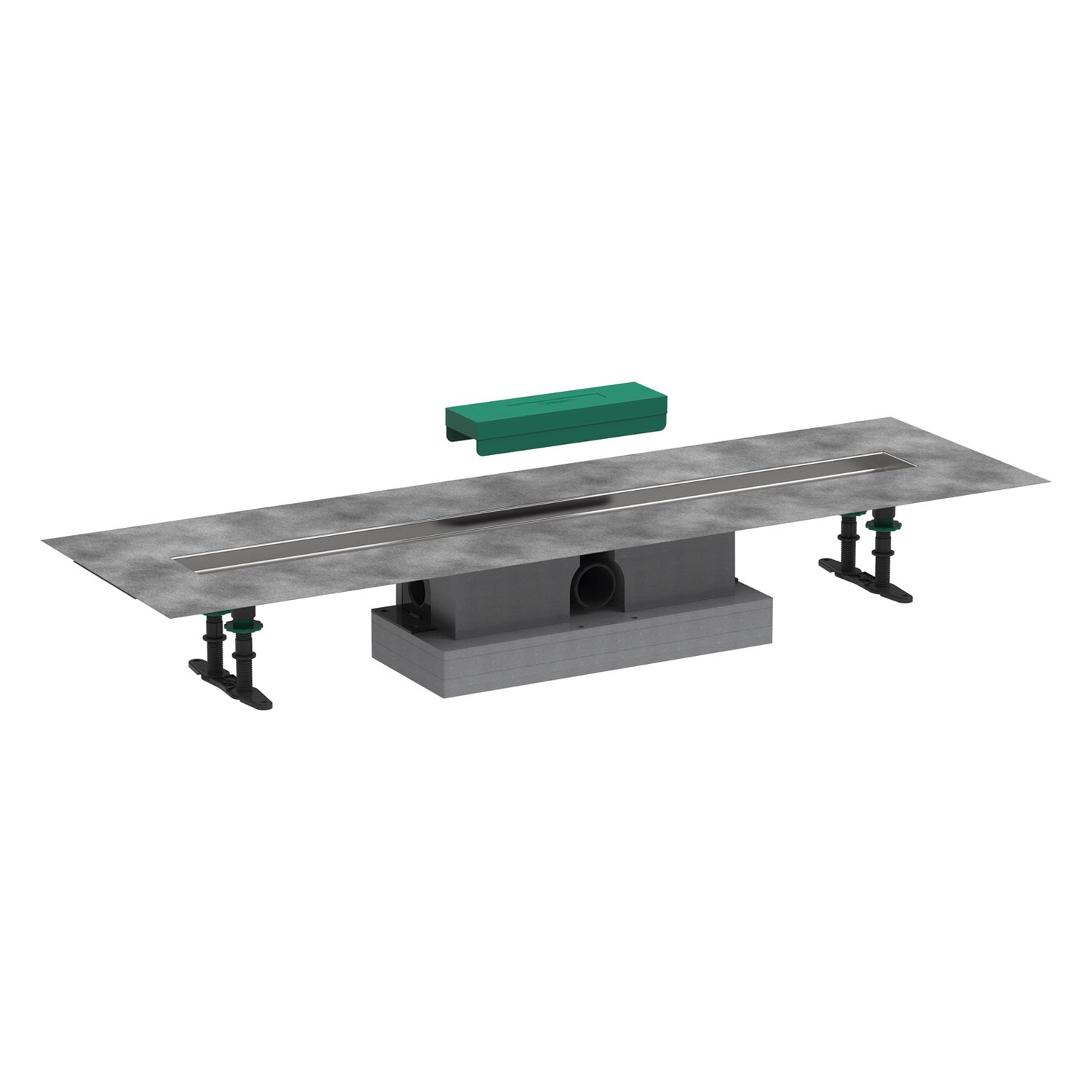 - besteht aus: Installationsset 90 cm, Grundkörper, werkseitig vormontiertem Dichtvlies, Siphon und Höhenverstellplatten