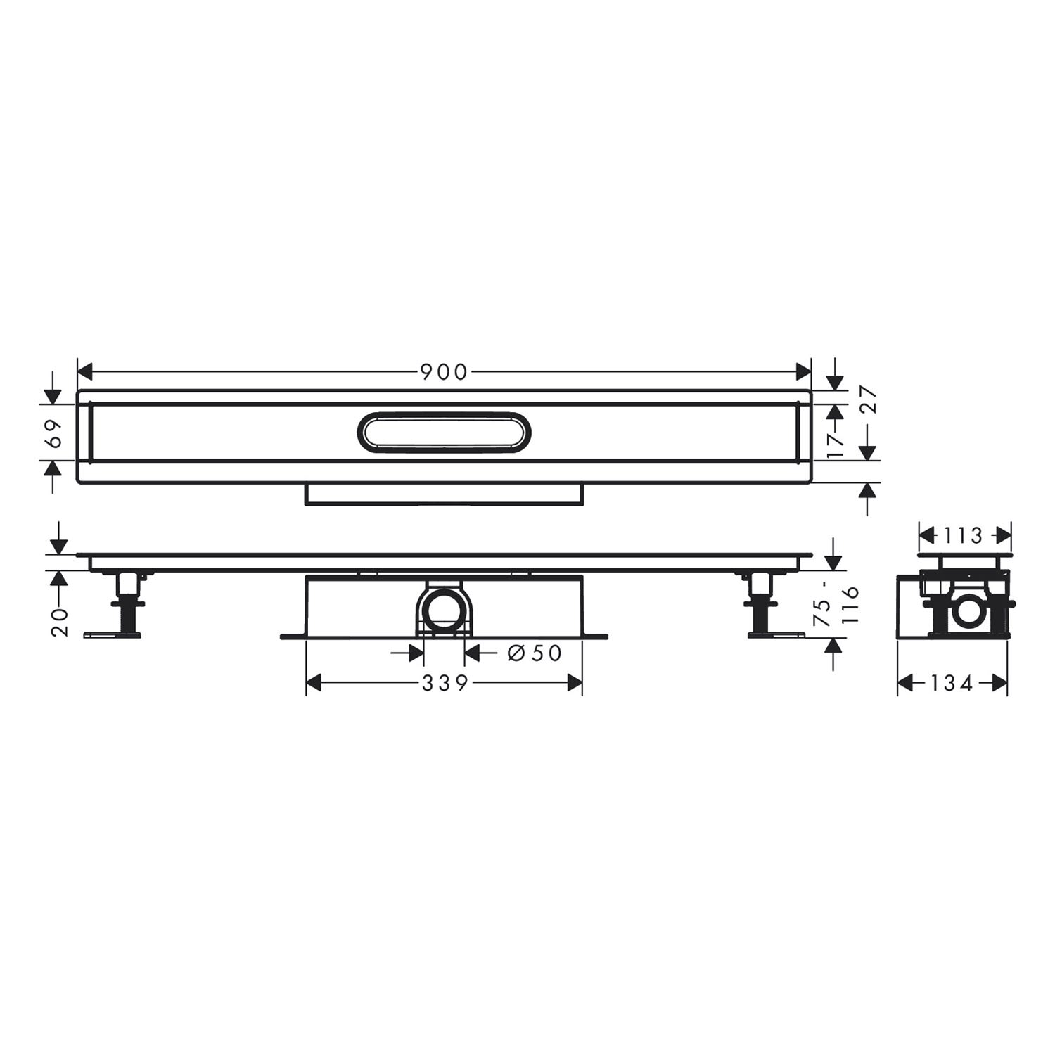 hansgrohe uBox universal Komplettset 90 cm, Standardinstallation für Duschrinnen Fertigsets