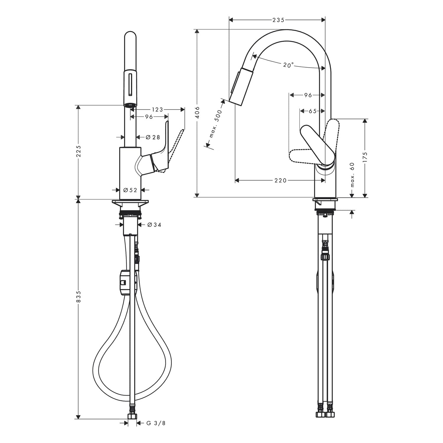 hansgrohe Focus M41 Einhebel-Küchenarmatur 240 Eco, Ausziehbrause, 2jet