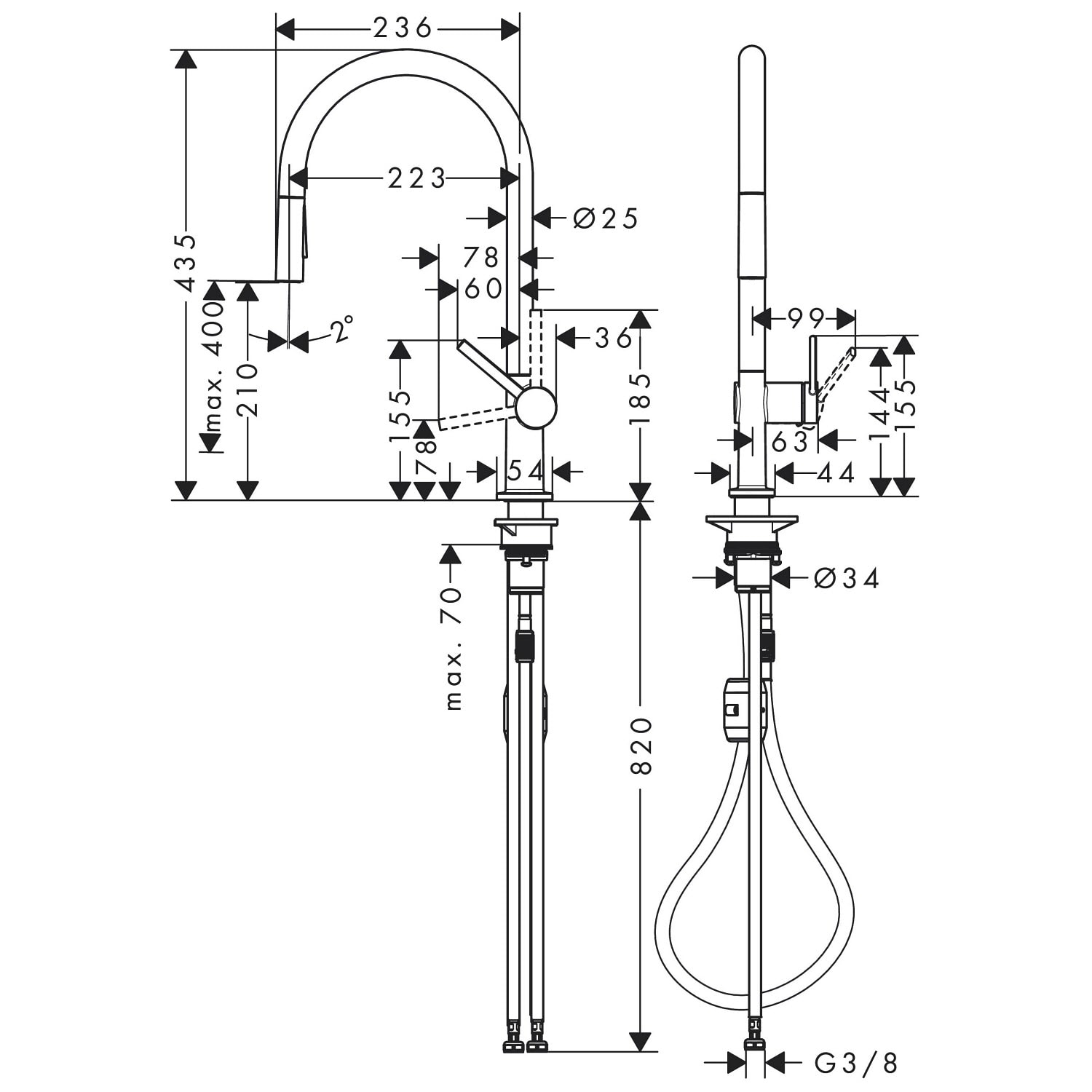 hansgrohe Aqittura M91 Filtersystem 210, Ausziehauslauf, 1jet, sBox