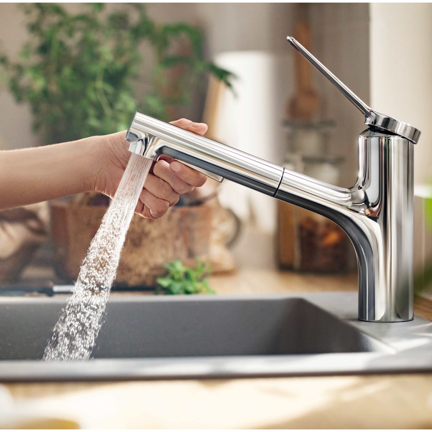- mehr Komfort: mit Ausziehbrause (0,5 m) für einen größeren Aktionsradius rund um die Küchenspüle