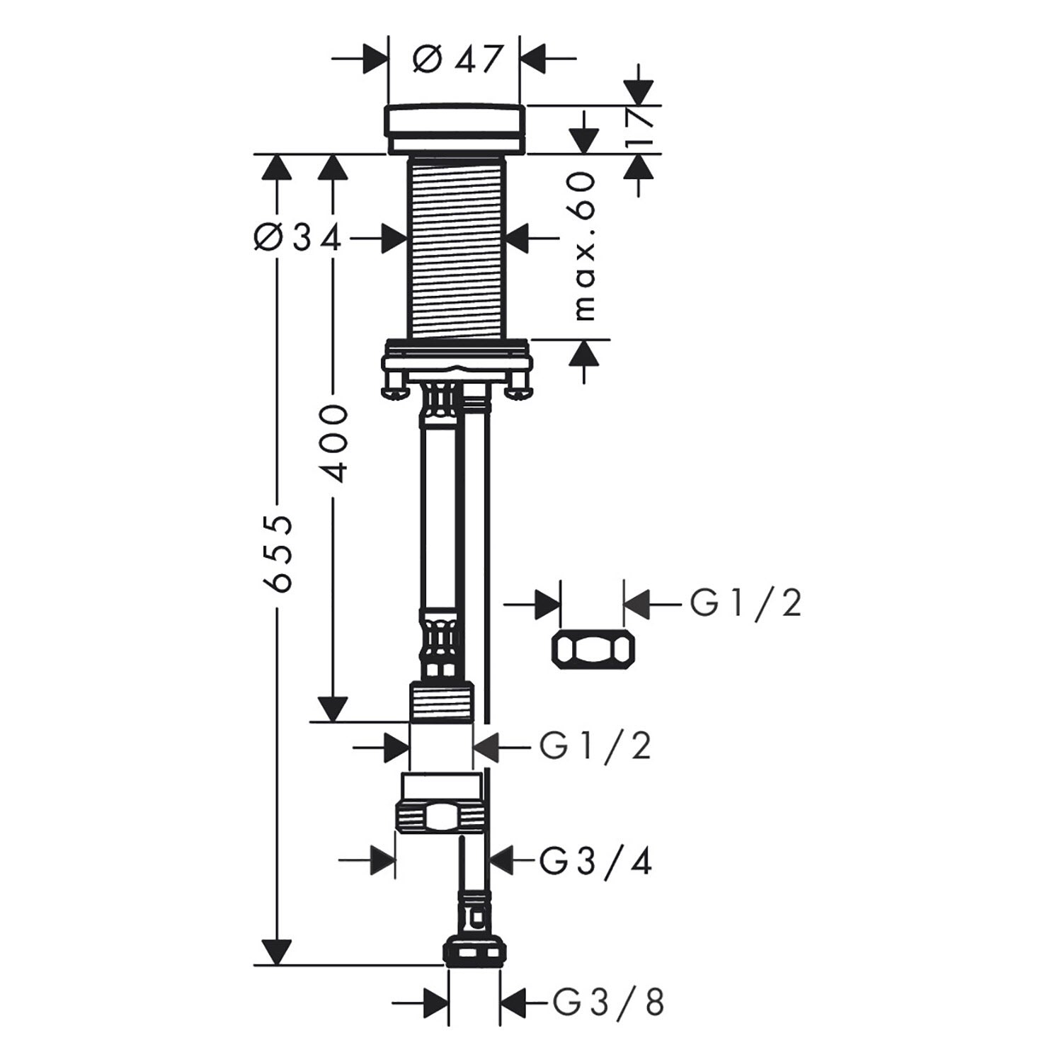- Anschlussgröße: G 1/2 mit Adapter auf G 3/4