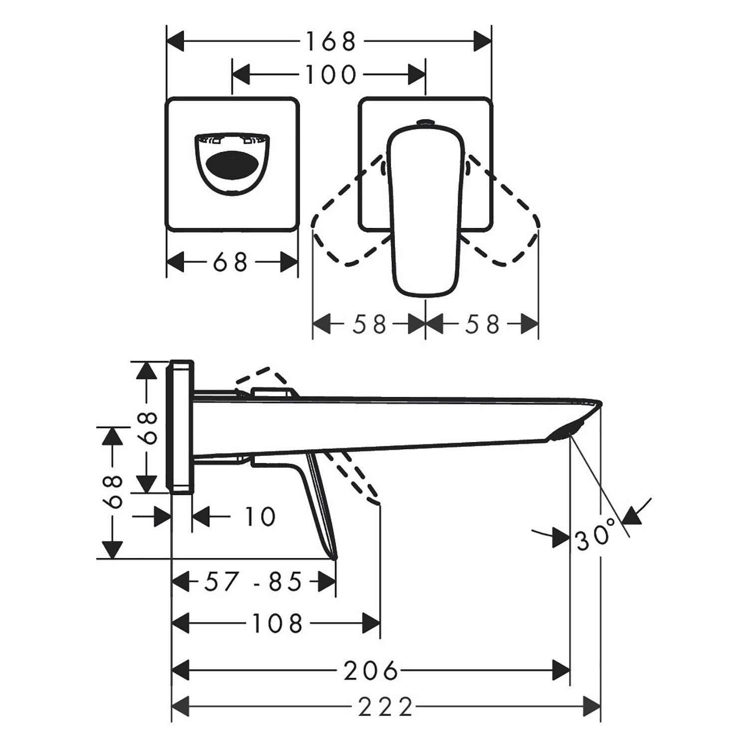 - exklusives Ambiente: an der Wand montierte Waschtisch-Armatur mit einer Ausladung von 20,5 cm