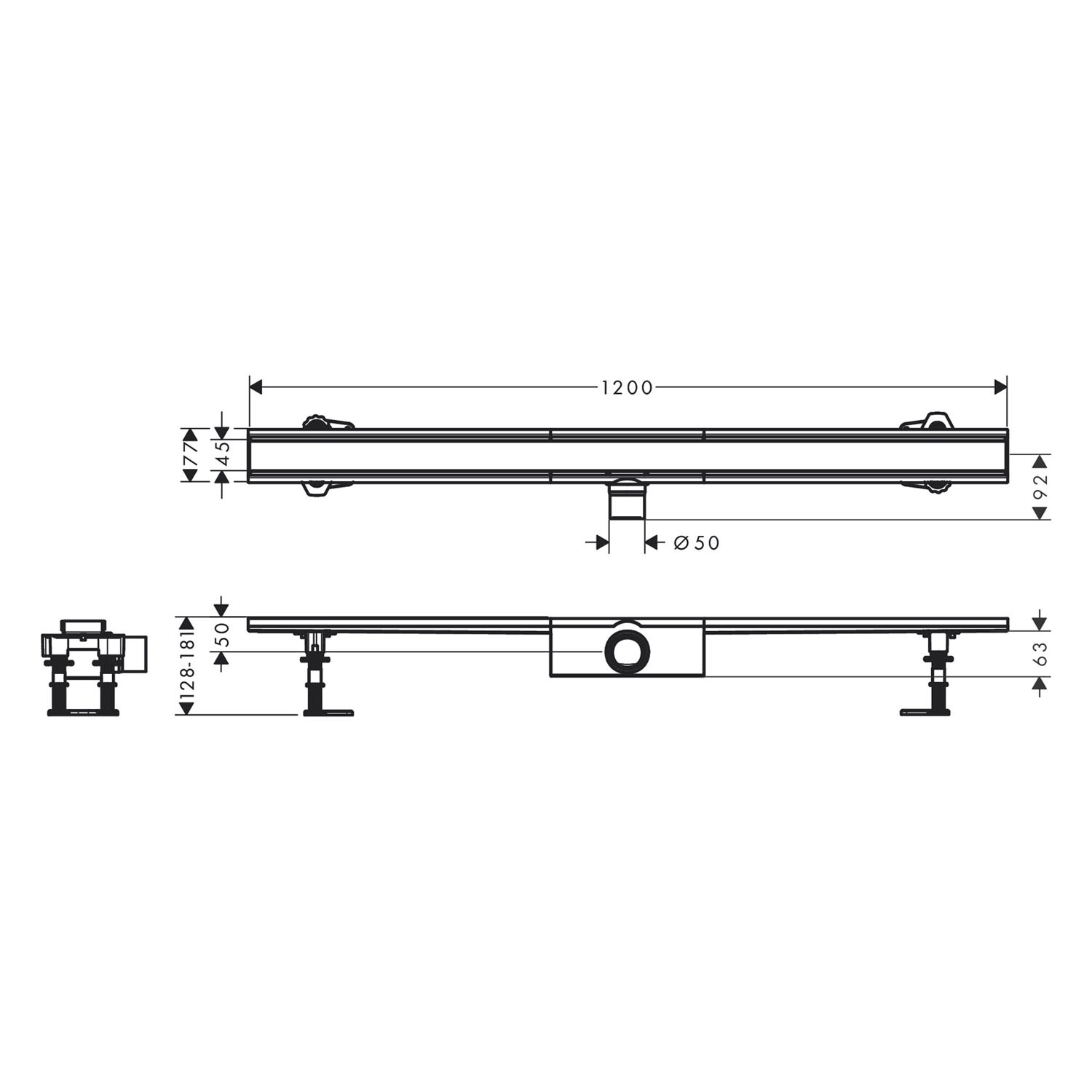 hansgrohe RainDrain Compact Komplettset Duschrinne 120 cm für Standardinstallation