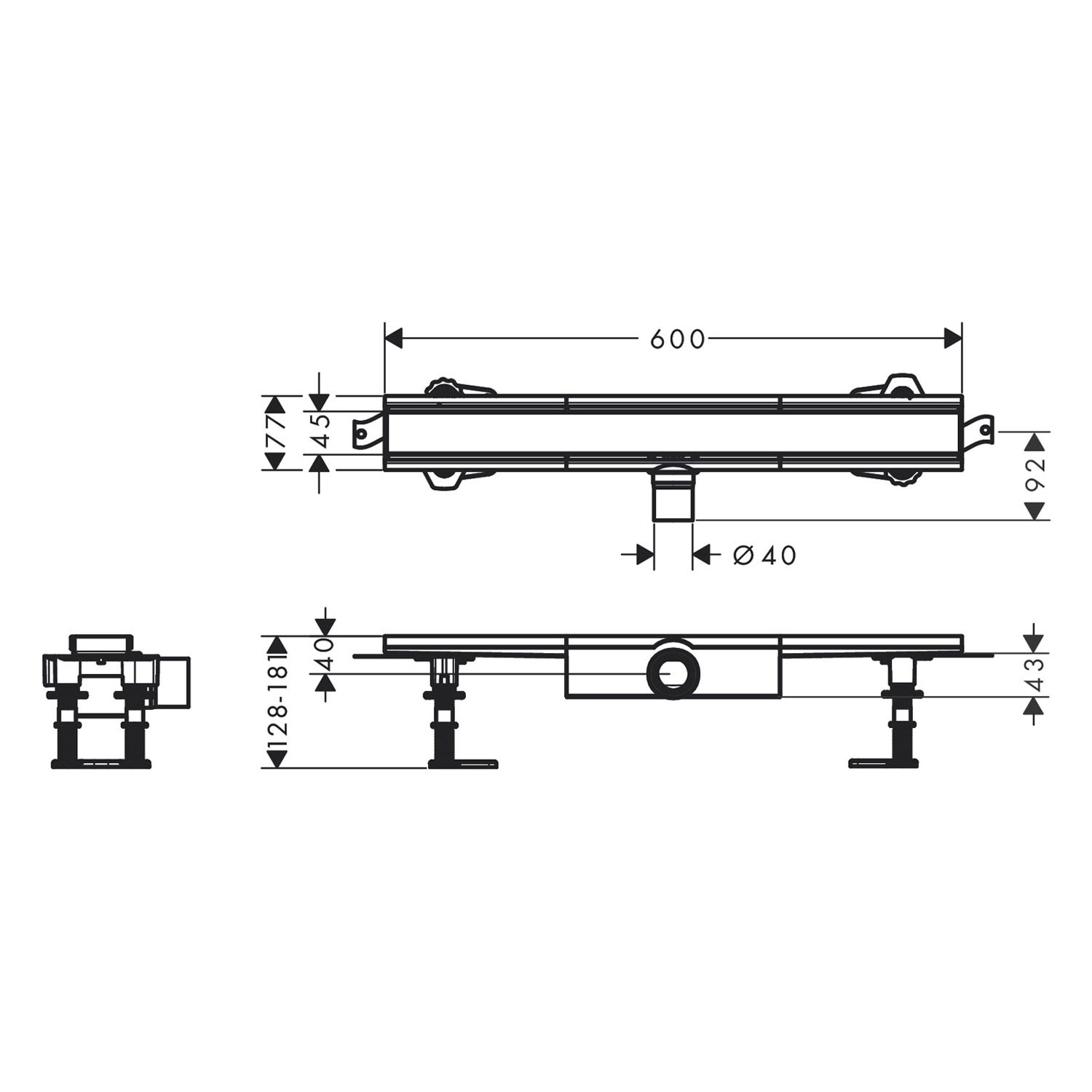 hansgrohe RainDrain Compact Komplettset Duschrinne 60 cm für flache Installation