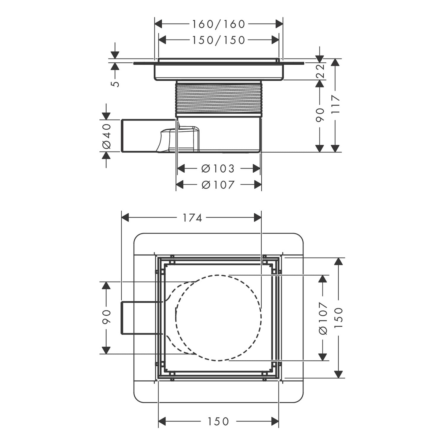- Standard-Installation für Sperrwasserhöhe 50 mm (DN50) Installationstiefe: 79 mm