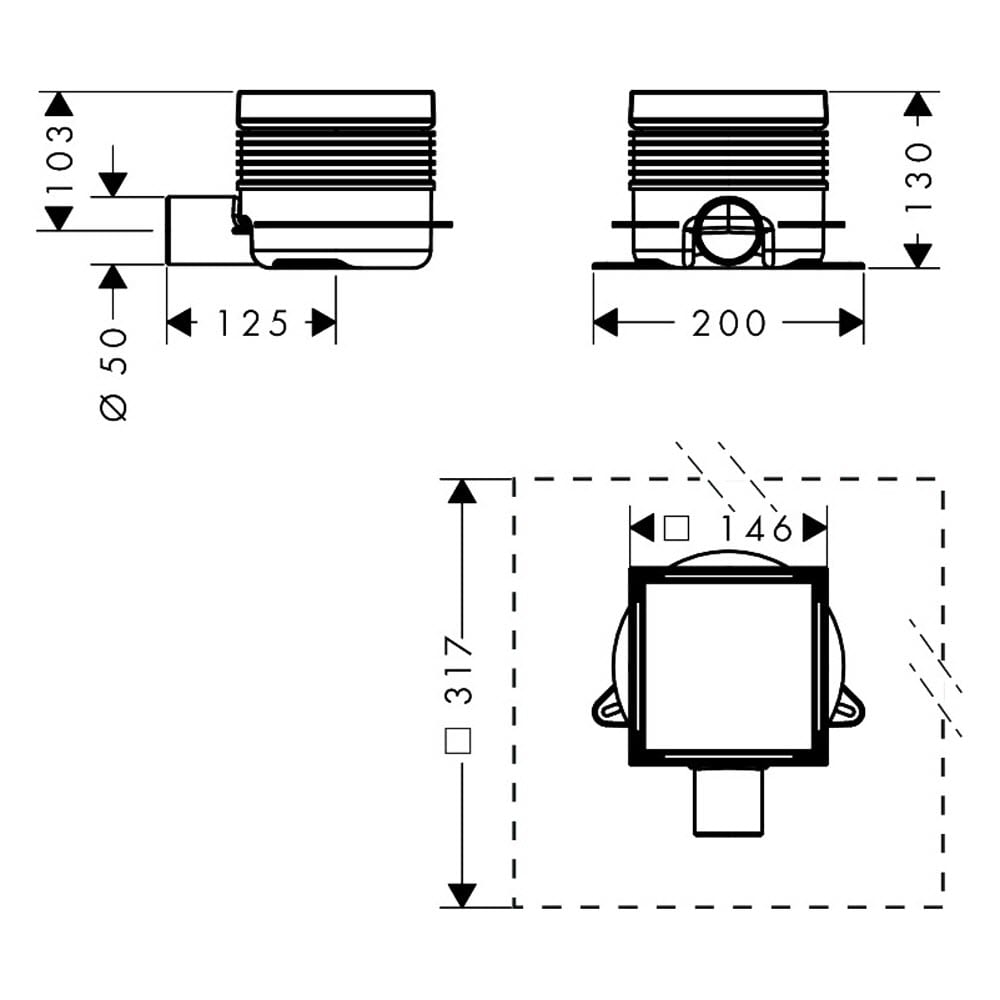 hansgrohe RainDrain Spot Plus Komplettset Punktablauf 150/150 mit höhenverstellbarem Rahmen und rückseitig befliesbar