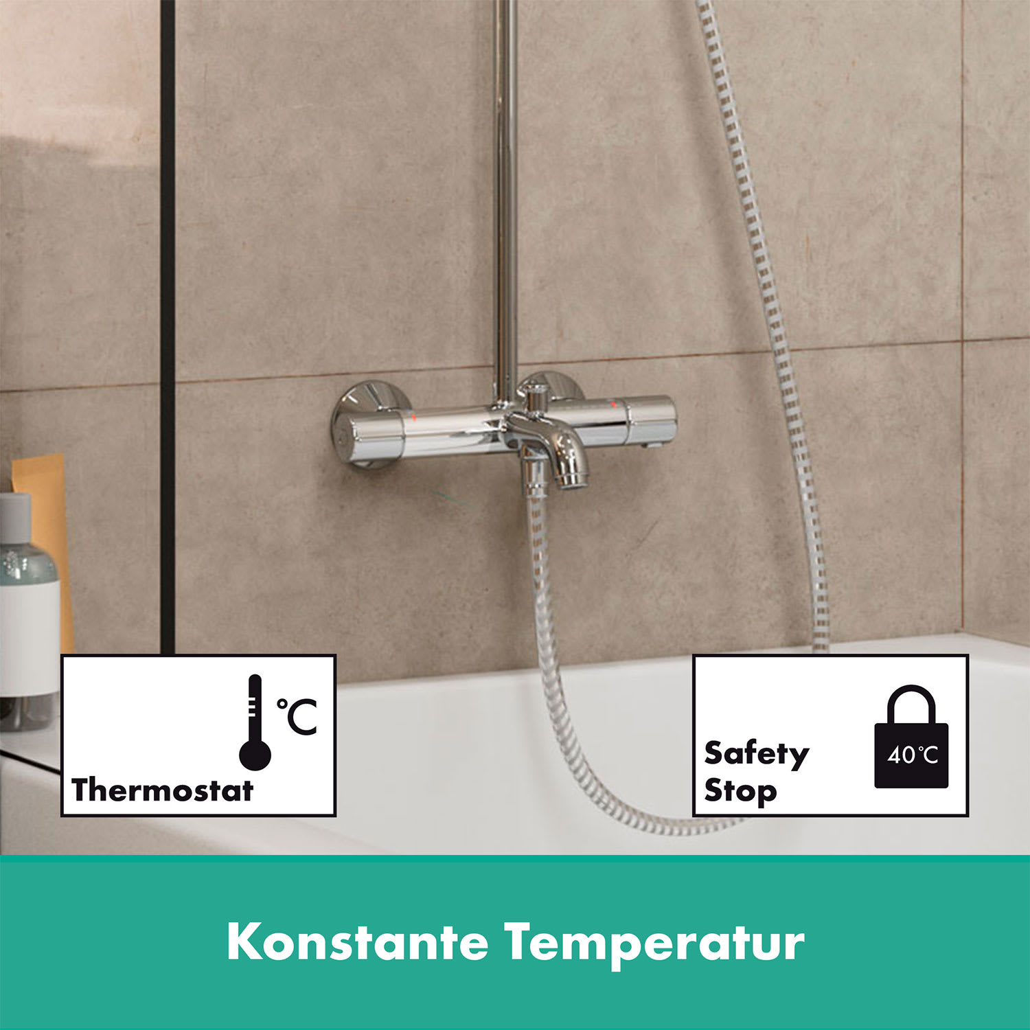 - Lieferumfang: Showerpipe mit Wannenthermostat, Rosetten, S-Anschlüsse, Befestigungsmaterial, Montageanleitung