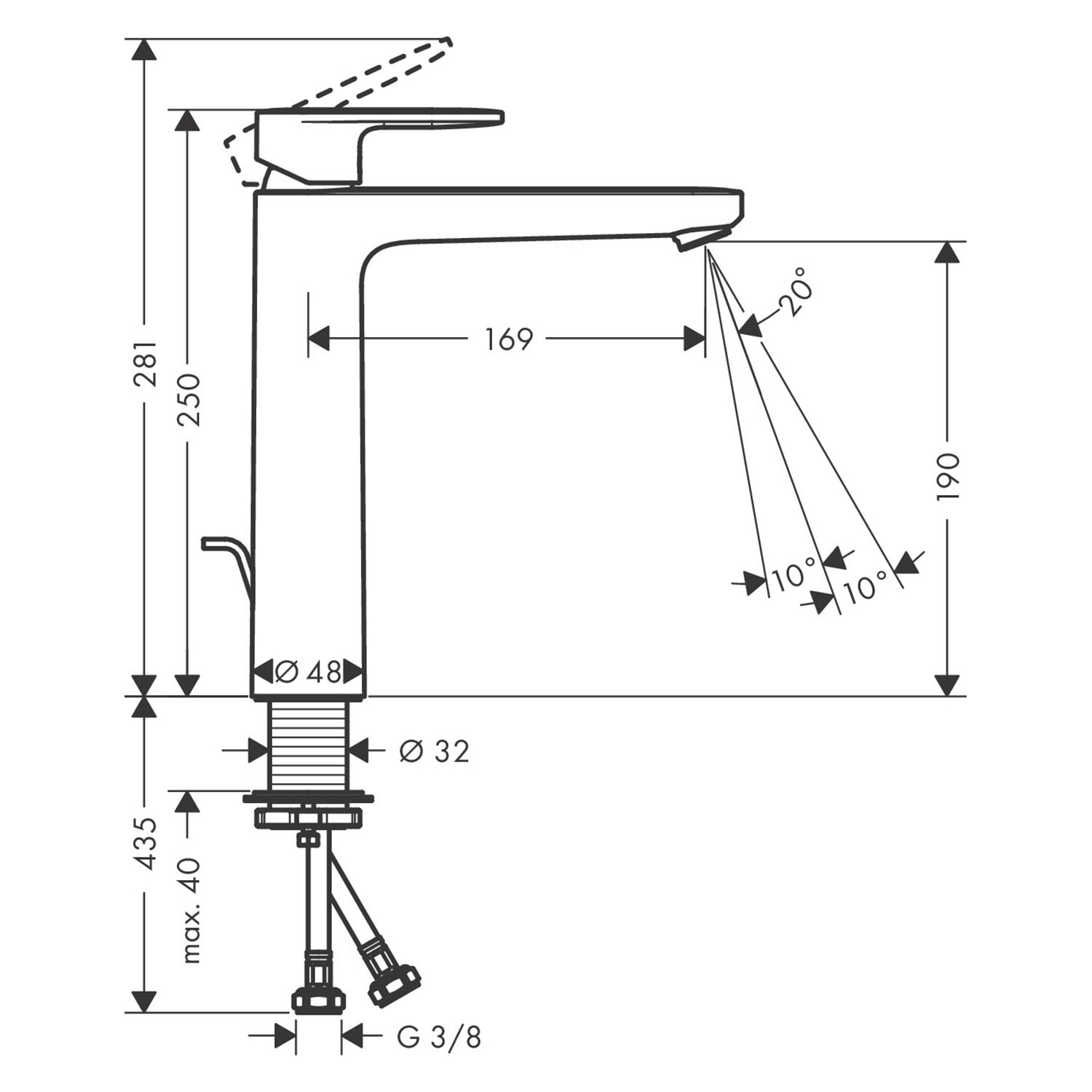 - mehr Bewegungsfreiheit: durch den hohen Auslauf eignet sich die Armatur besonders gut für eine freistehende Waschschüssel (ComfortZone 190)