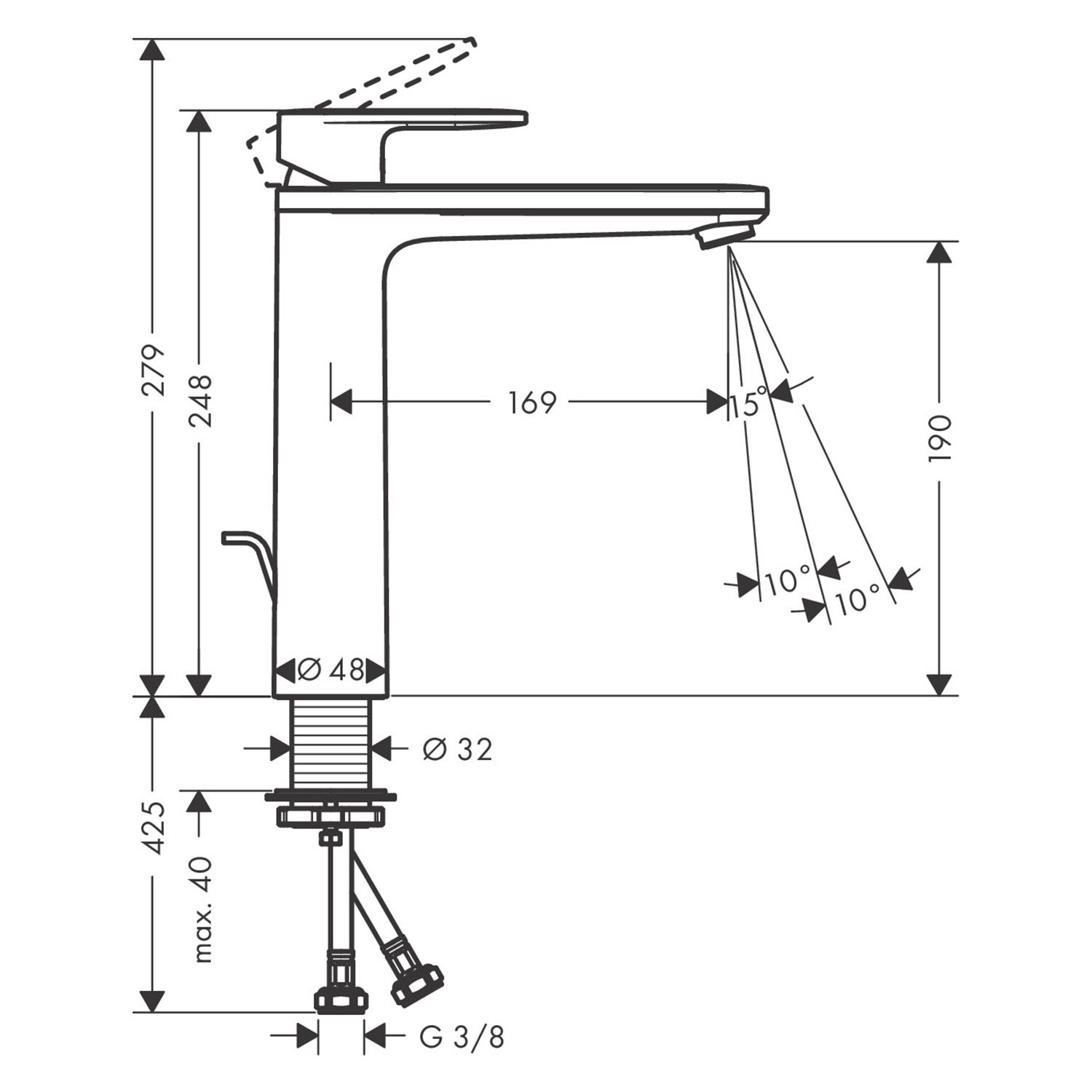 - mehr Bewegungsfreiheit: durch den hohen Auslauf eignet sich die Armatur besonders gut für eine freistehende Waschschüssel (ComfortZone 190)