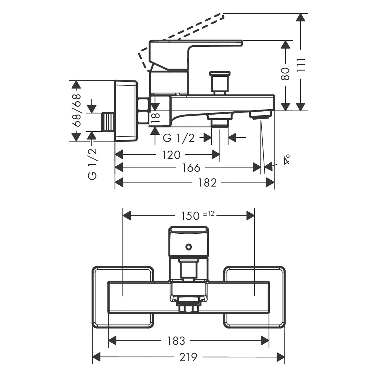 hansgrohe Vernis Shape Einhebel-Wannenarmatur Aufputz