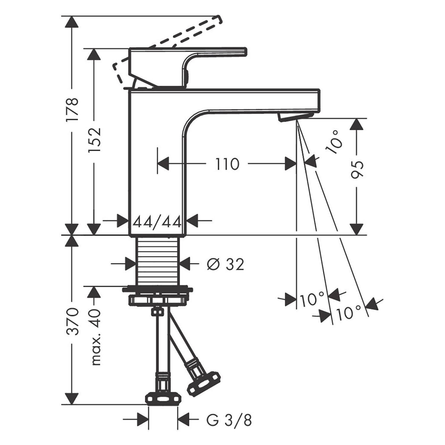 - einfache Installation: die Armatur wird über flexible Anschlussschläuche (G 3/8) mit den Wasseranschlüssen verbunden (Größe: DN15)