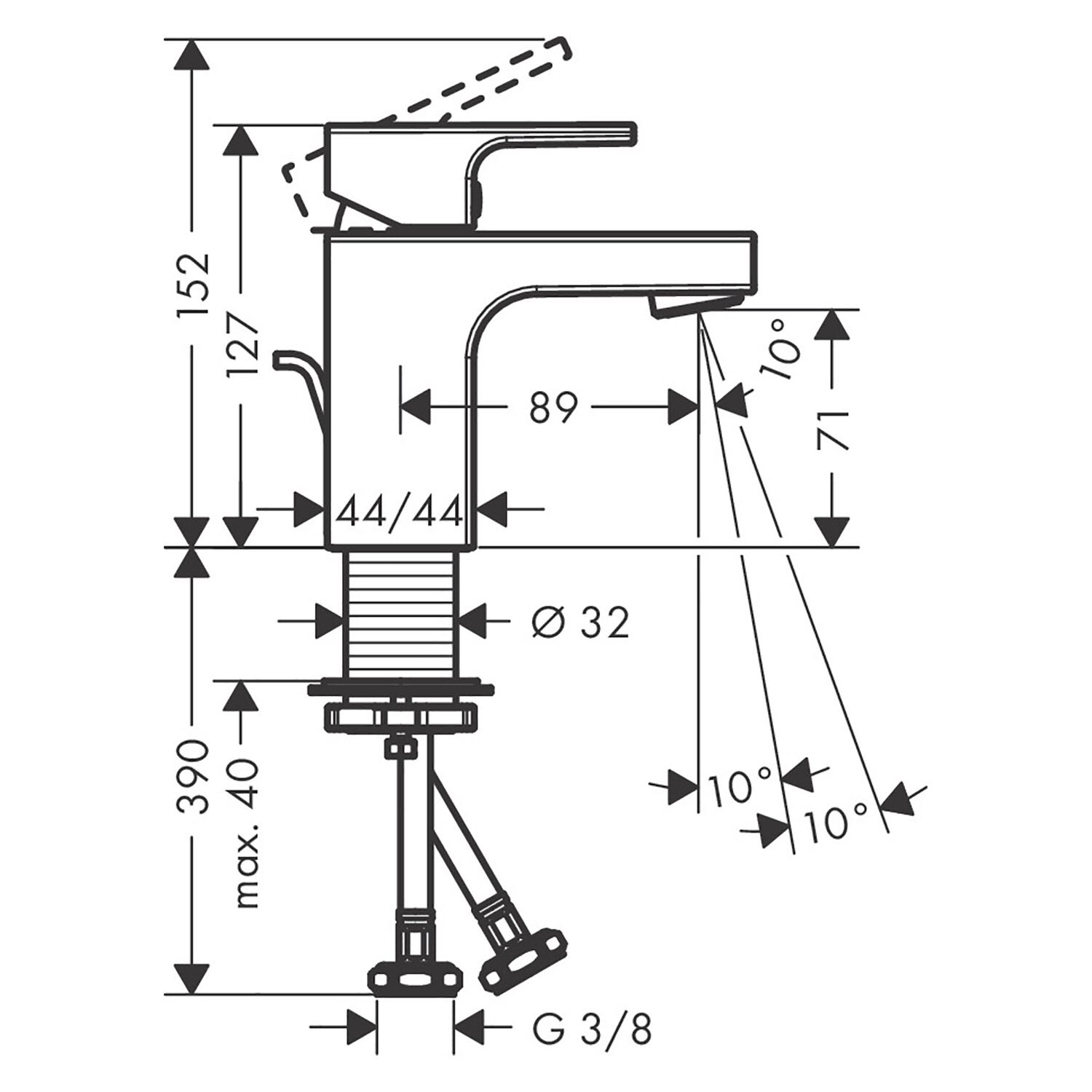 - einfache Installation: die Armatur wird über flexible Anschlussschläuche (G 3/8) mit den Wasseranschlüssen verbunden (Größe: DN15)