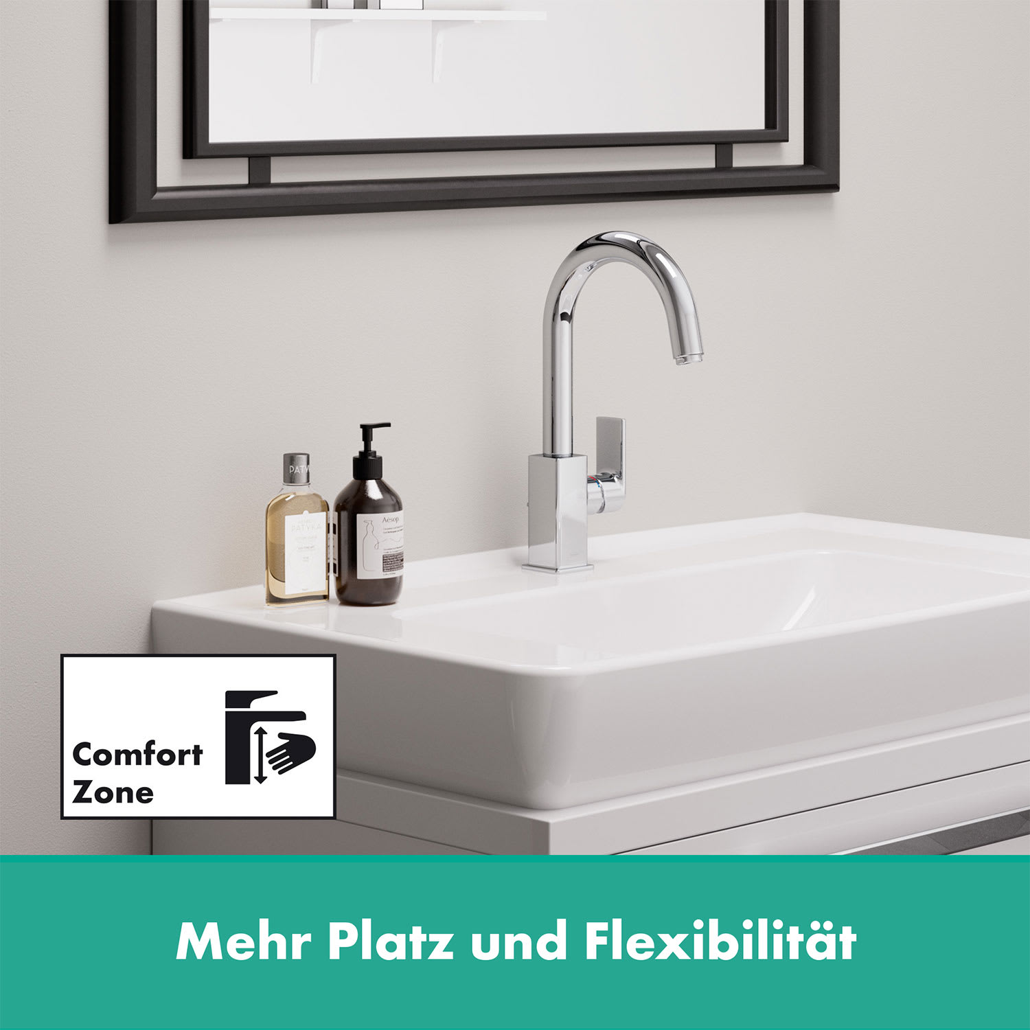 - mehr Bewegungsfreiheit: der sehr große Abstand zwischen Auslauf und Becken bietet viel Raum für eine komfortable Nutzung (ComfortZone 200)