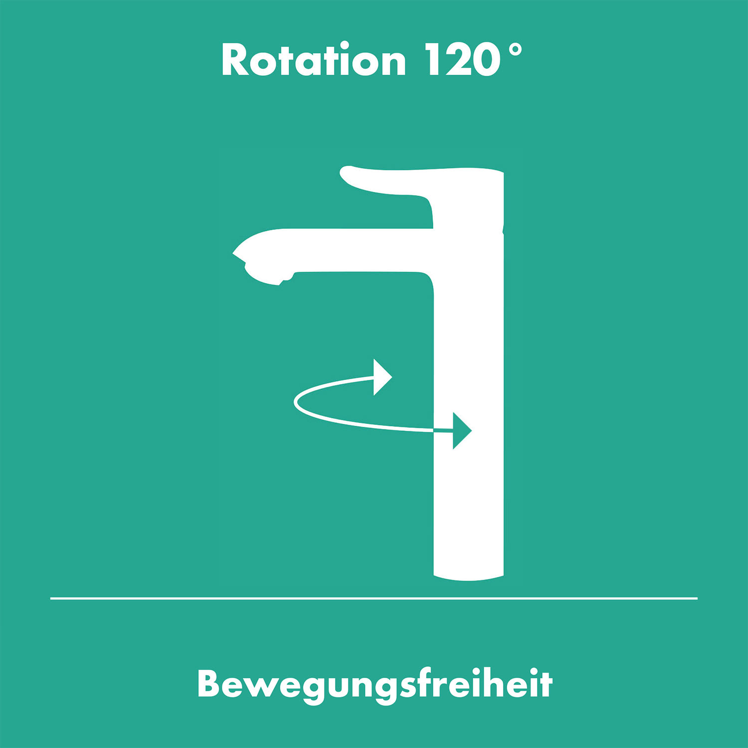 - mit Schwenkauslauf für komfortables Haarewaschen oder Befüllen von Gefäßen am Waschbecken (120 Grad)