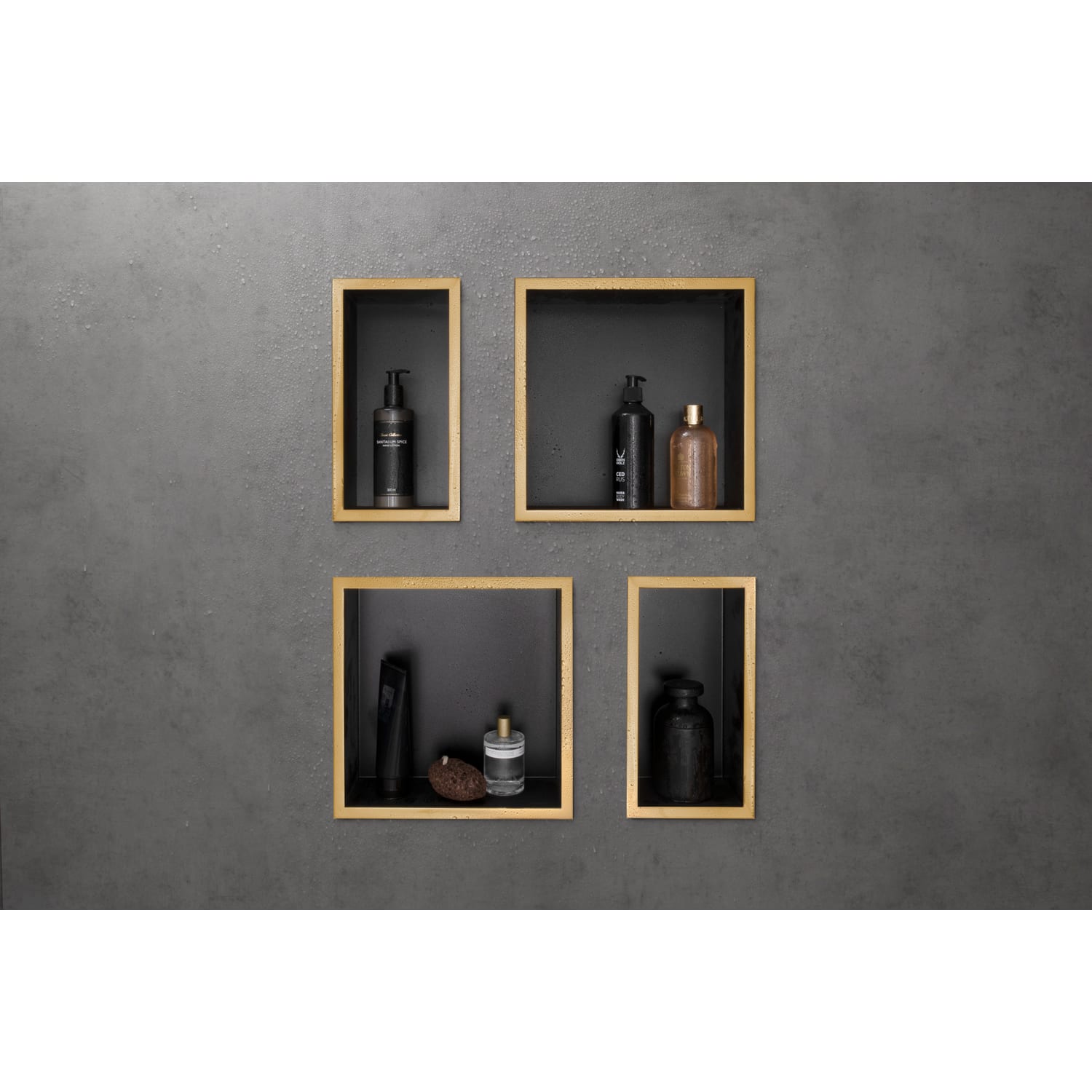 - Wandnische Oberfläche in Mattschwarz mit farbigem Rahmen als Design-Highlight