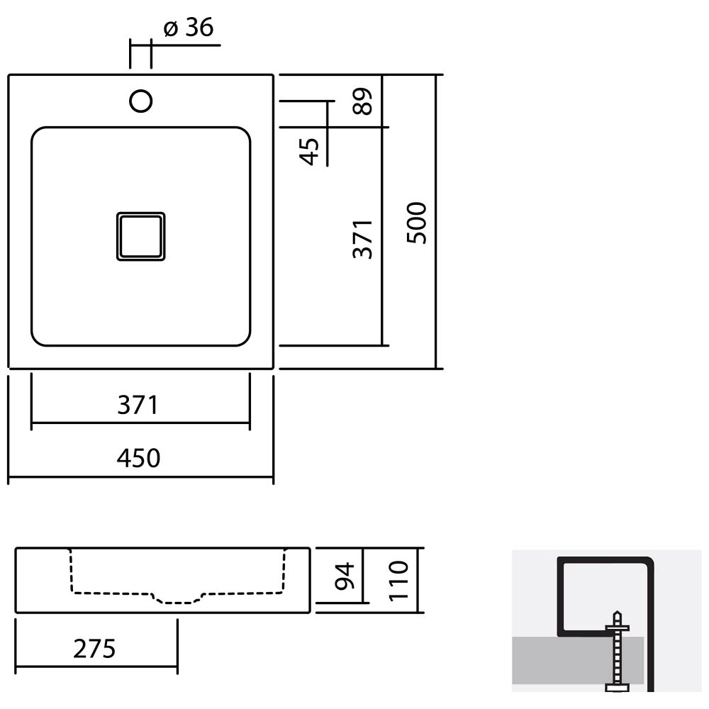 Alape Aufsatzbecken AB.Q450H.1, rechteckig 45 x 50 cm