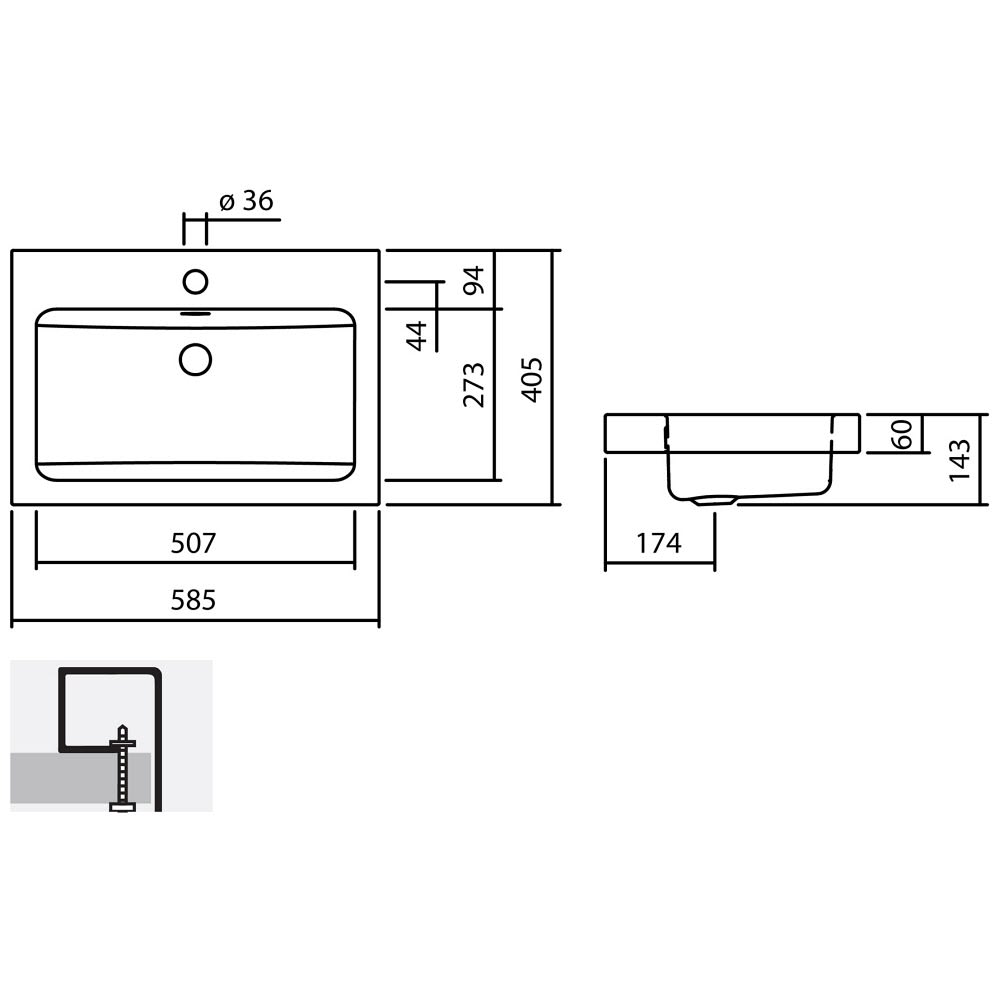 Alape Aufsatzbecken AB.R585H.1, rechteckig 58,5 x 40,5 cm