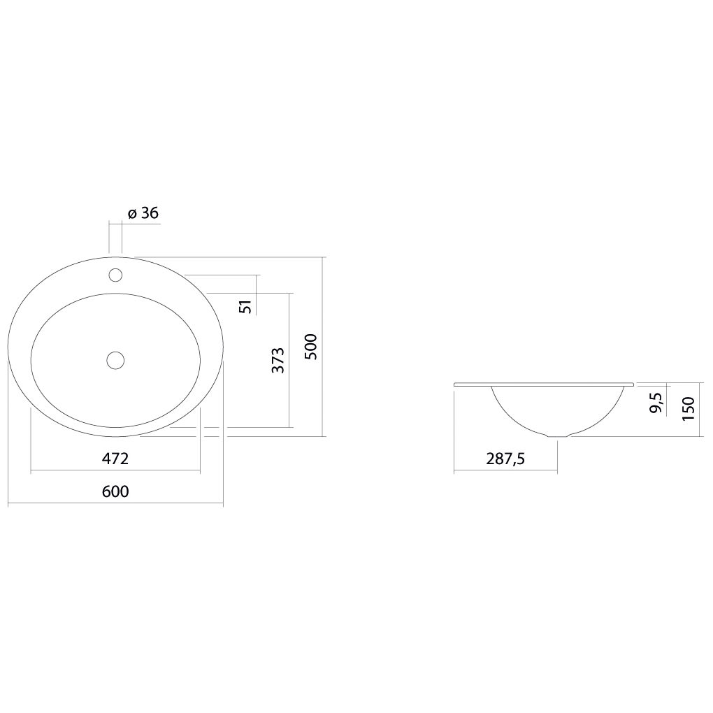 Alape Einbaubecken EB.O600H, ovalförmig 60 x 50 cm