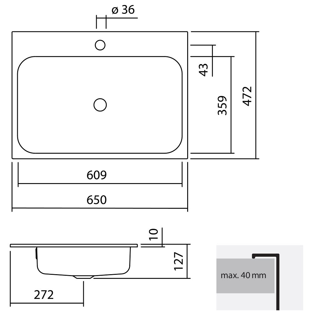 Alape Stream Einbaubecken EB.SR650H, rechteckig 65 x 47,2 cm
