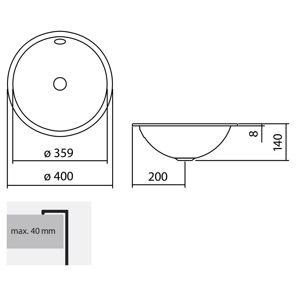 Alape Einbaubecken EB.K400, kreisförmig mit 40 cm Ø