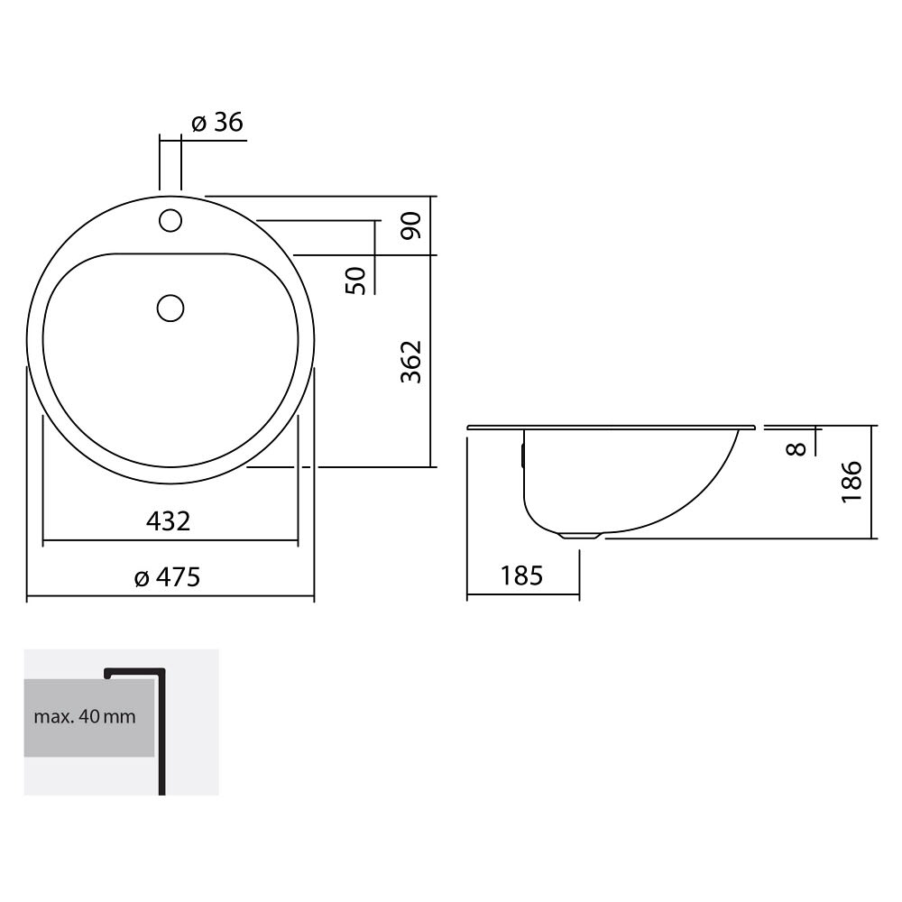 Alape Einbaubecken EW 3, kreisförmig mit 47,5 cm Ø