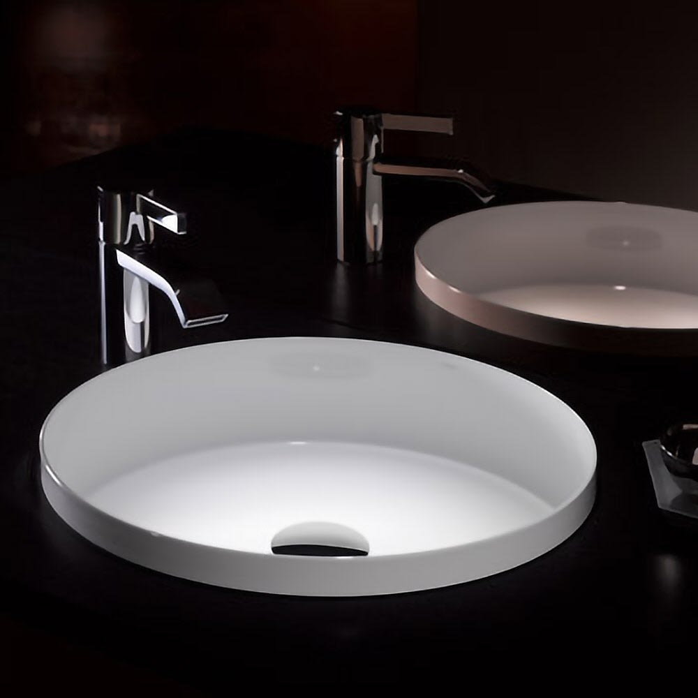 Im kreisrunden, filigranen Design der Unisono-Becken vereinen sich Formenreinheit, Funktionalität und Qualität zu einem Ganzen. Der Werkstoff Glasierter Stahl zeichnet sich dabei besonders im täglichen Gebrauch aus. Wenn Stahl und Glasur eine untrennbare Verbindung eingehen, erlangt der Verbundwerkstoff eine außerordentliche Beständigkeit sowie weitere visuelle, hygienische und physische Materialvorteile über die gesamte Lebensdauer hinweg.