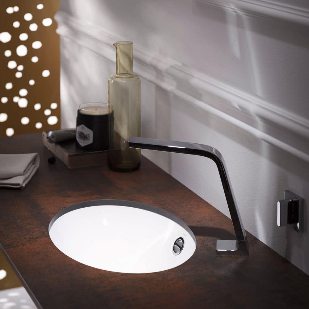 Das ovale Unterbaubecken der O-Serie integriert sich harmonisch in den Waschplatz, ohne in der Tiefe viel Raum einzunehmen. Das zeitlose Design und das robuste Material ermöglichen eine langlebige Lösung mit höchsten Ansprüchen an Form und Funktion.