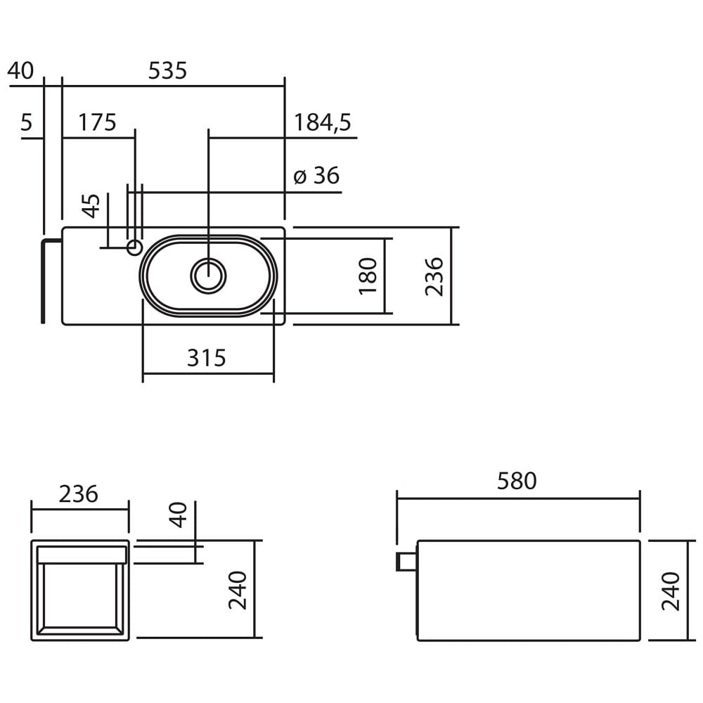 Alape Fusion.S Waschplatz WP.XXS2, rechteckig 58 x 23,6 cm, Beckenmulde rechts
