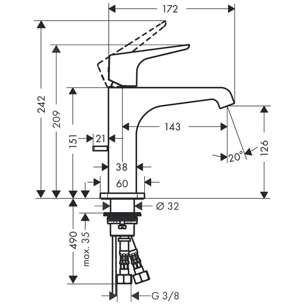 mit Hebelgriff und Ablaufgarnitur