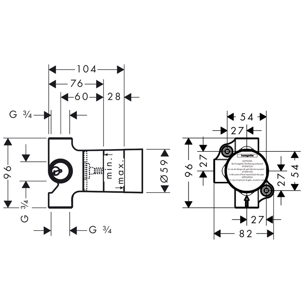 AXOR Grundkörper für Trio Ab- und Umstellventil Unterputz