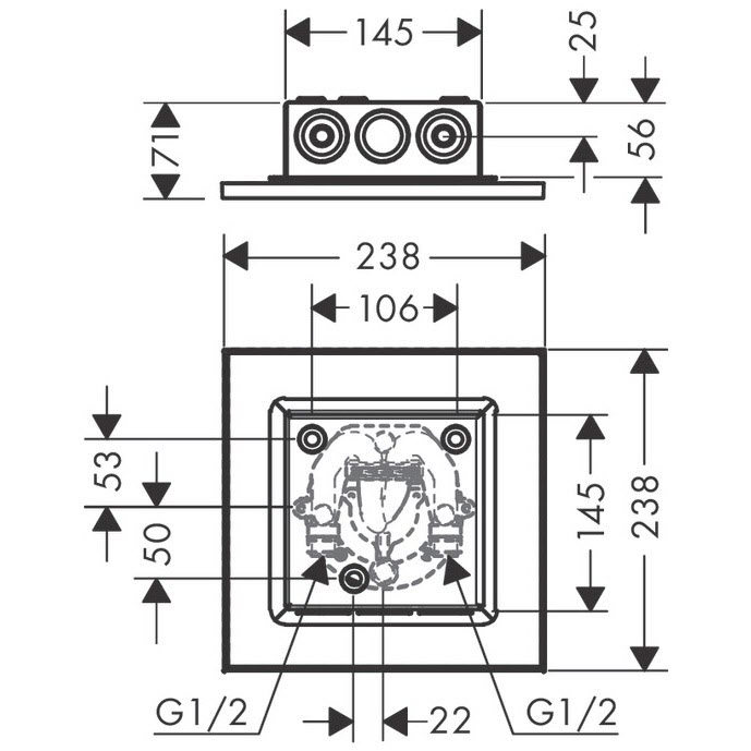- Brausekopfgröße: 23,8 x 23,8 cm