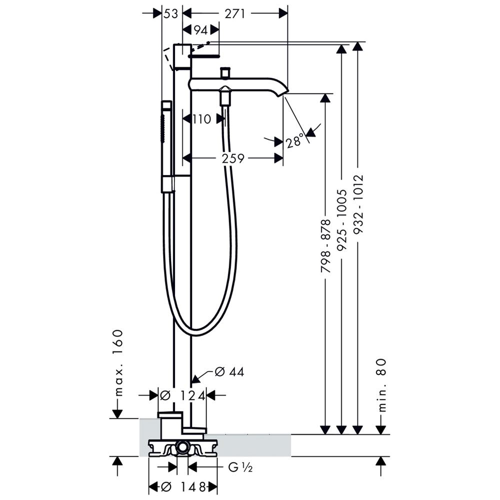 AXOR Uno Einhebel-Wannenmischer bodenstehend, mit Bügelgriff