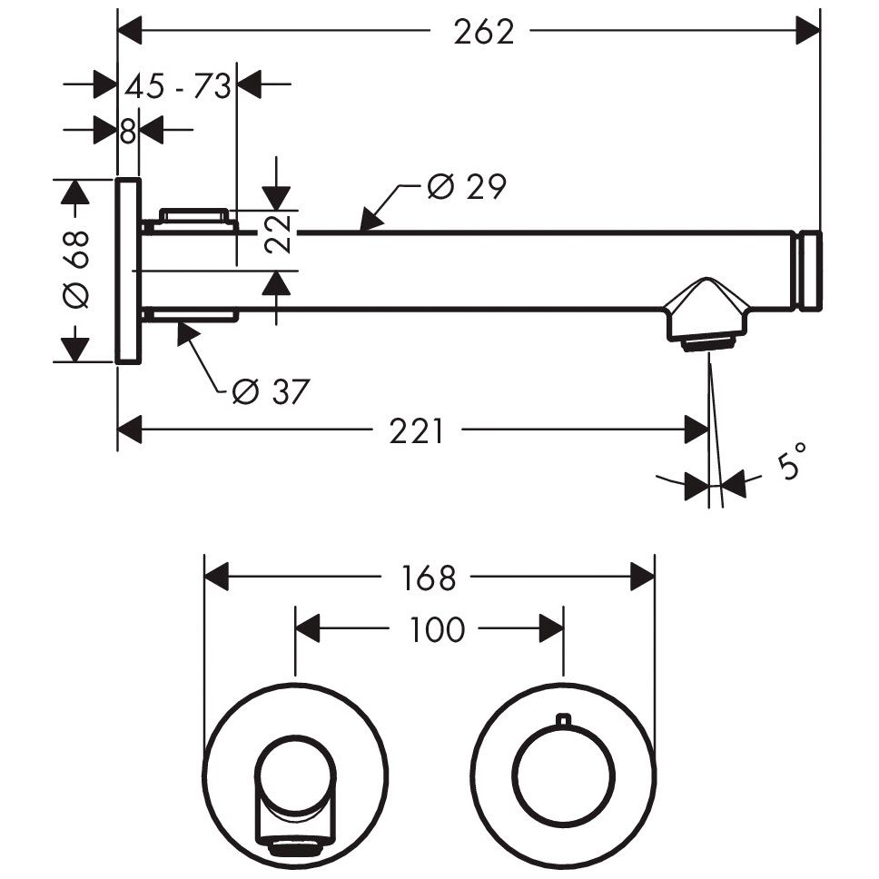 AXOR Uno Select Waschtischmischer Unterputz für Wandmontage, Ausladung 22 cm