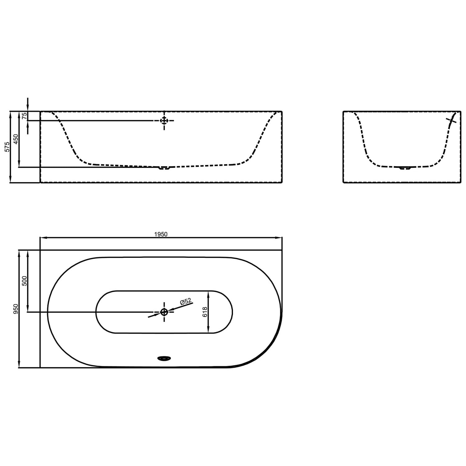 - Ablaufloch Ø 5,2 cm