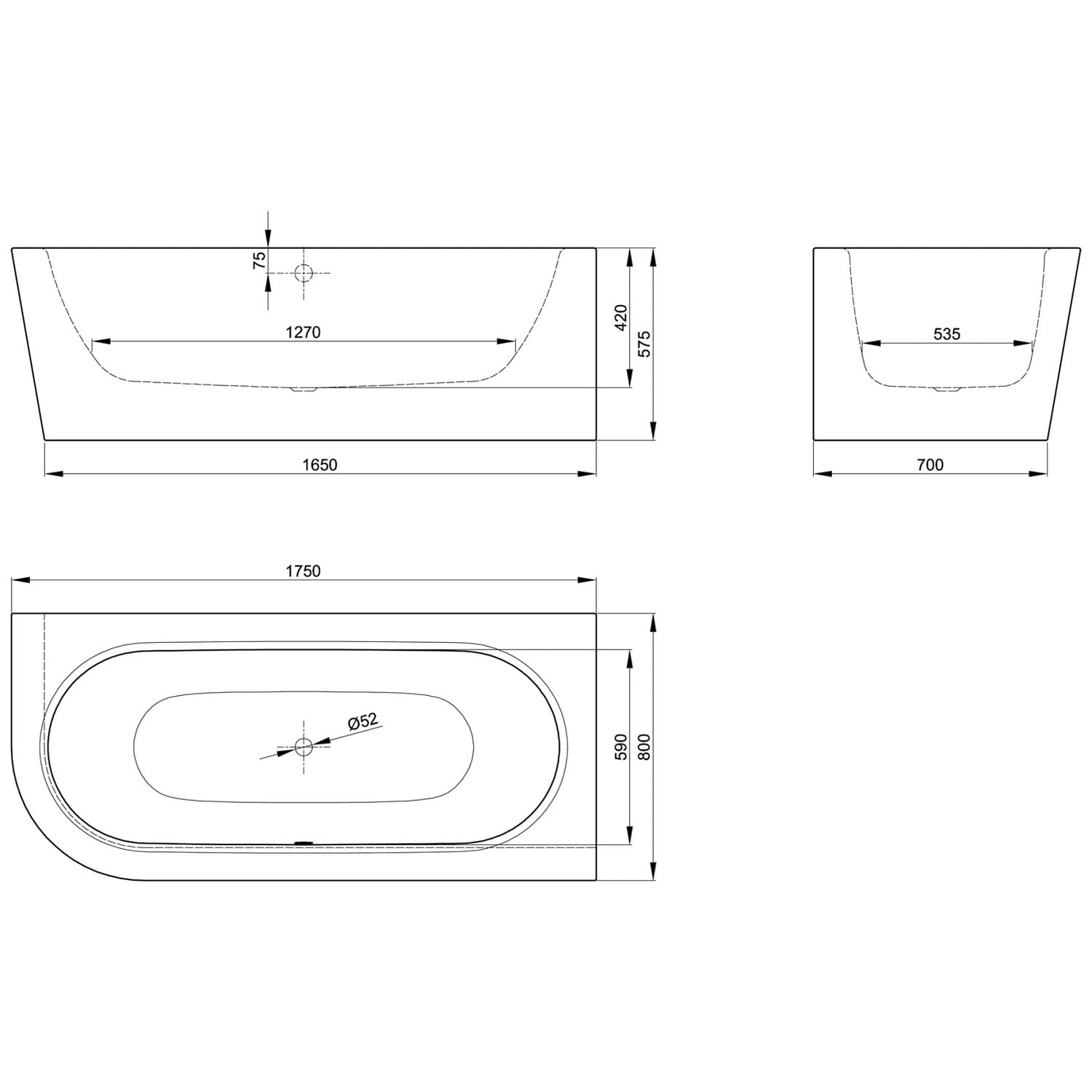 - Stahlbadewanne mit den Maßen: L: 175 B: 80 H: 42 cm