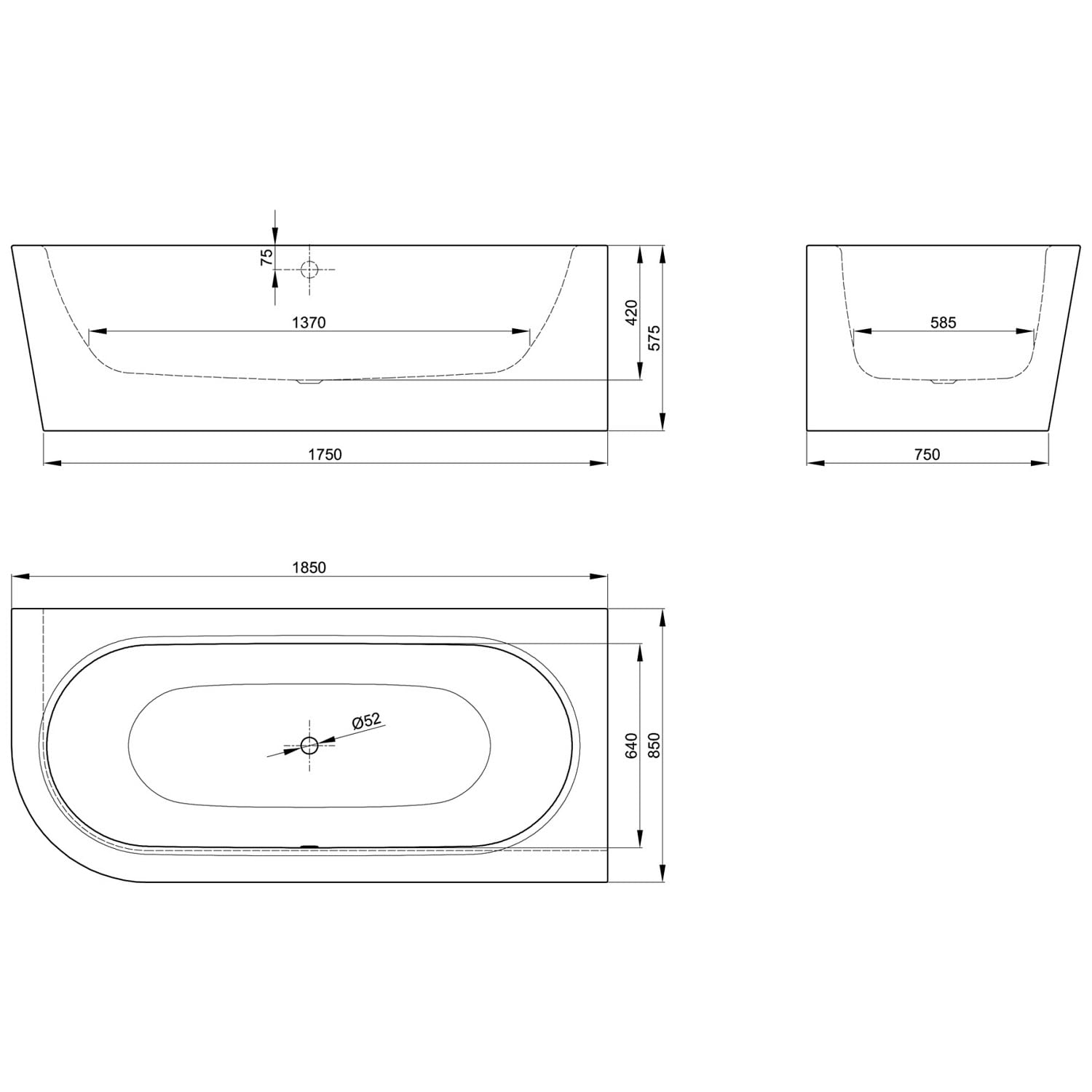 Einbau Ecke rechts, ohne Ablaufgarnitur