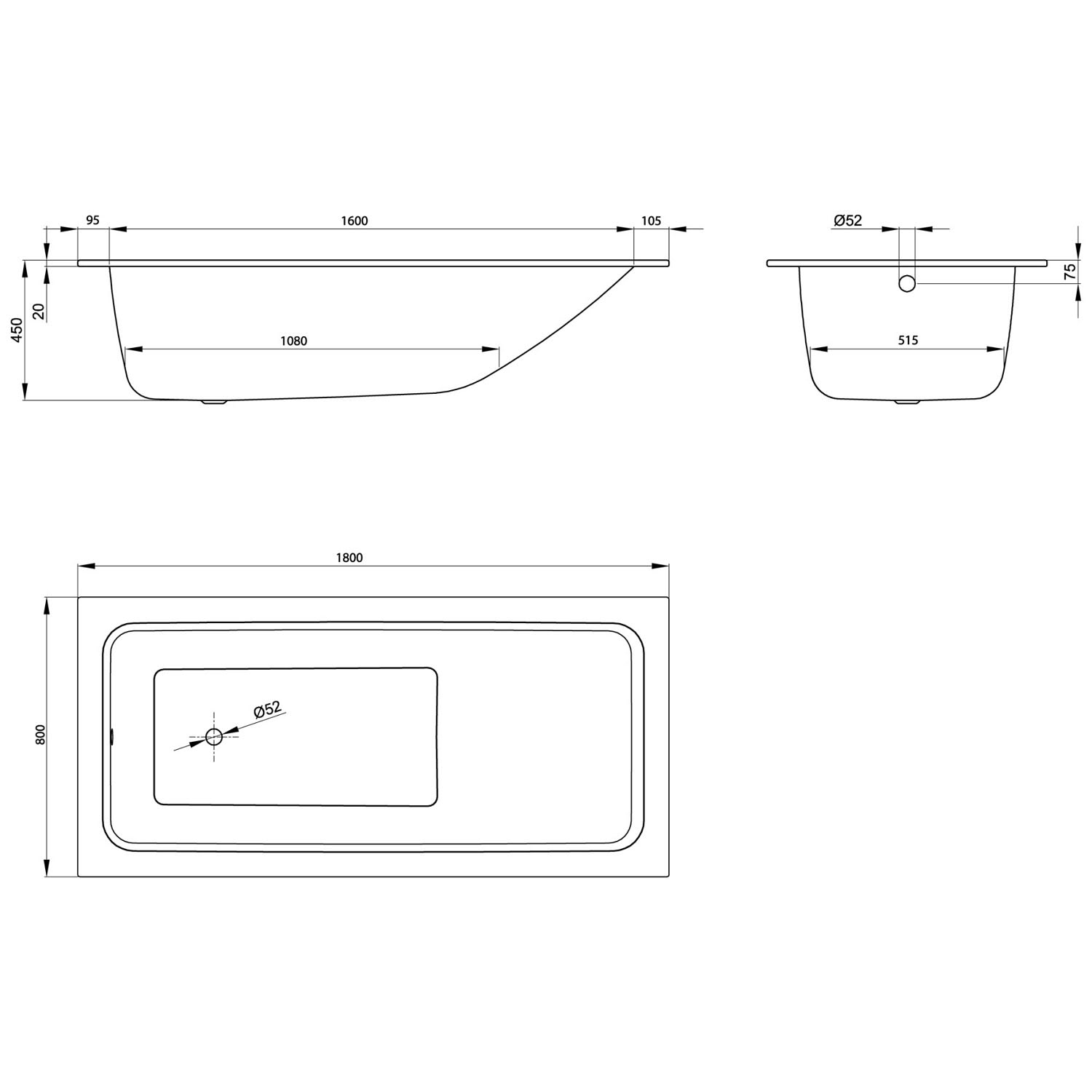 Bette One Relax Badewanne 180 x 80 mit rundem Ablauf