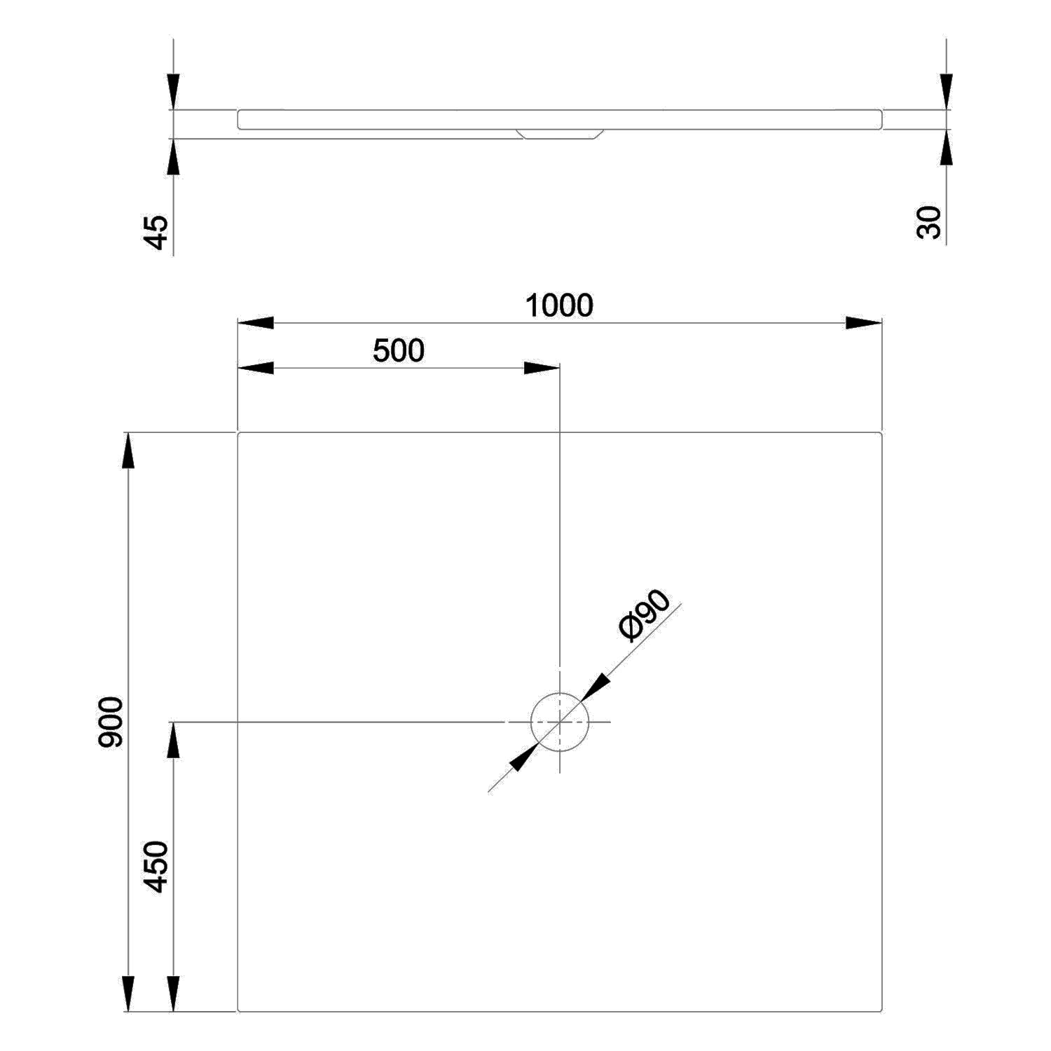 - mit Ablaufloch Ø 9 cm mittig platziert