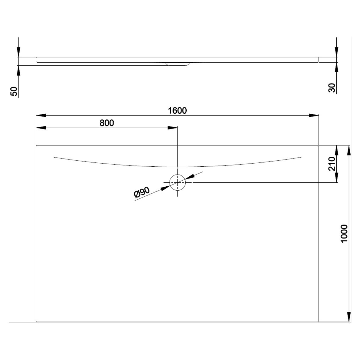 - mit einem seitlich platziertem Ablaufloch mit Ø 9 cm