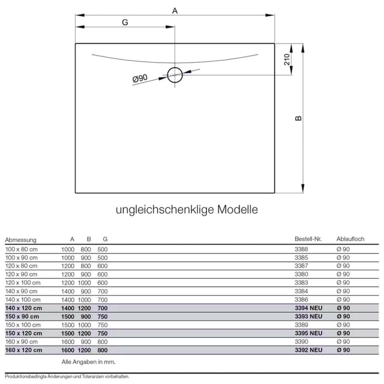 - mit einem seitlich platziertem Ablaufloch mit Ø 9 cm