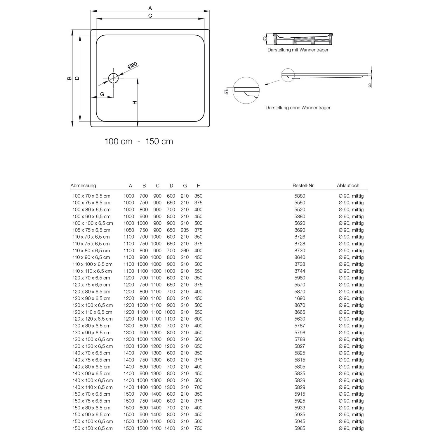 Bette Supra Duschwanne extraflach 110 x 75 x 6,5 cm mit Antirutsch Pro
