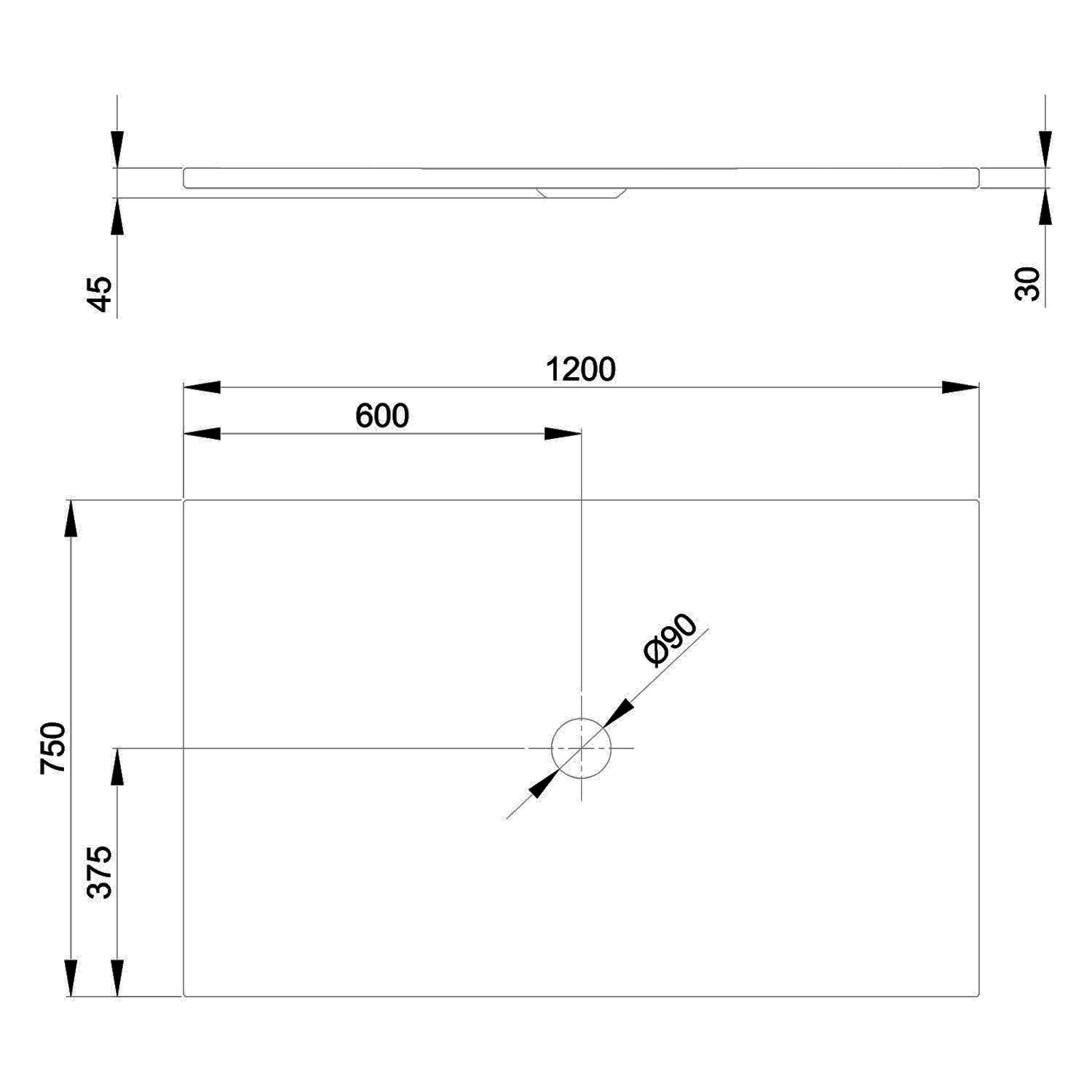 - mit Ablaufloch Ø 9 cm mittig platziert