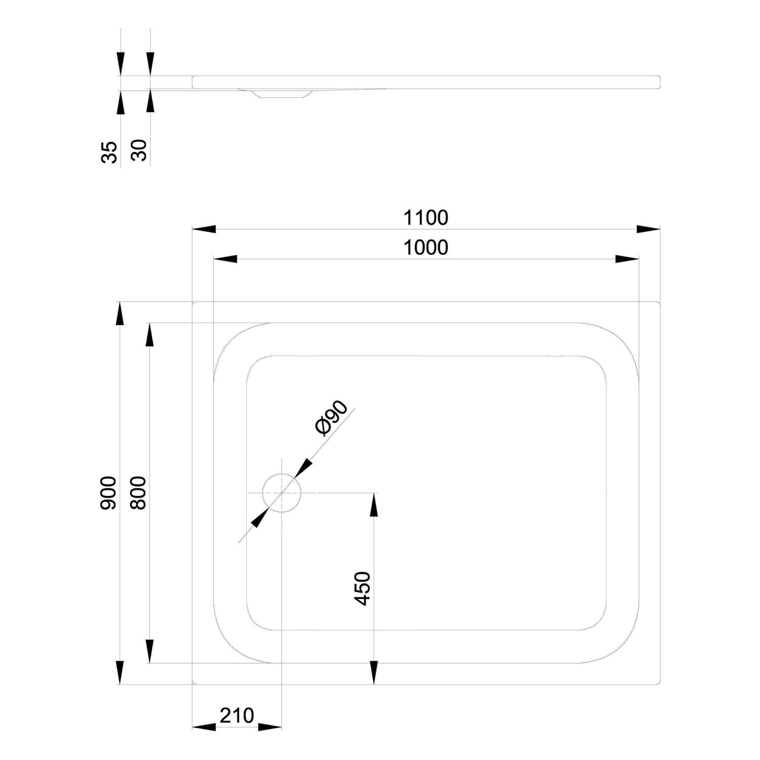 - Ablaufloch Ø 9 cm