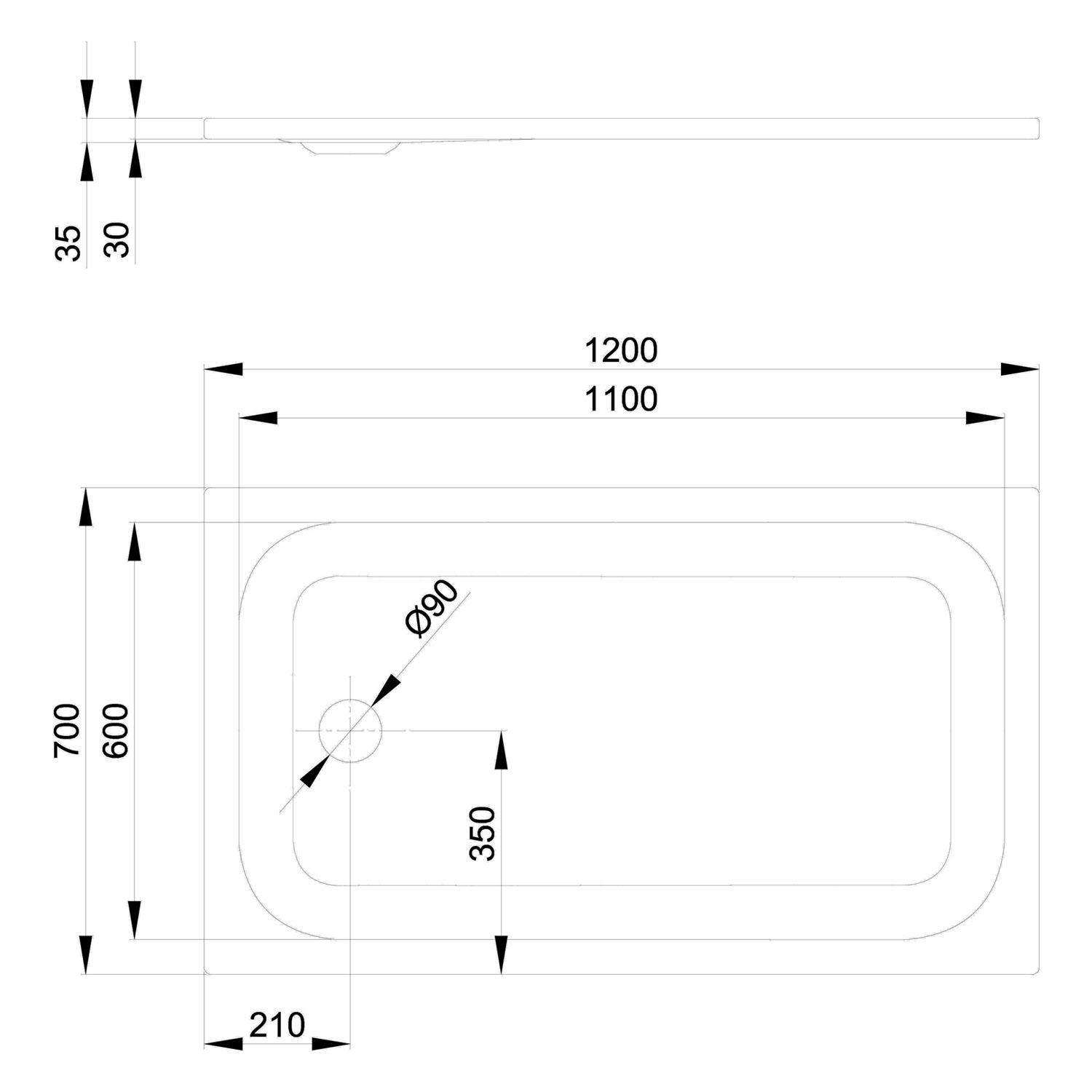 - Ablaufloch Ø 9 cm